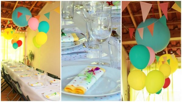 Les ballons sont les stars de cette fête. On les a choisis dans des teintes vives et variées, pour créer une ambiance ultra vitaminée, digne d’un arc-en-ciel.