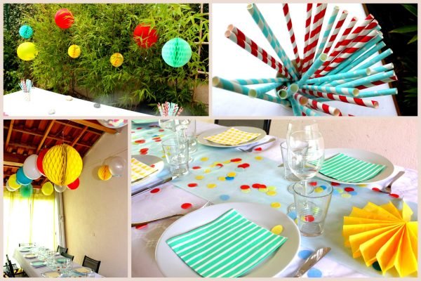 Sur la table, on retrouve des confettis multicolores pour rester dans l’esprit de fête, mais tout en légèreté.