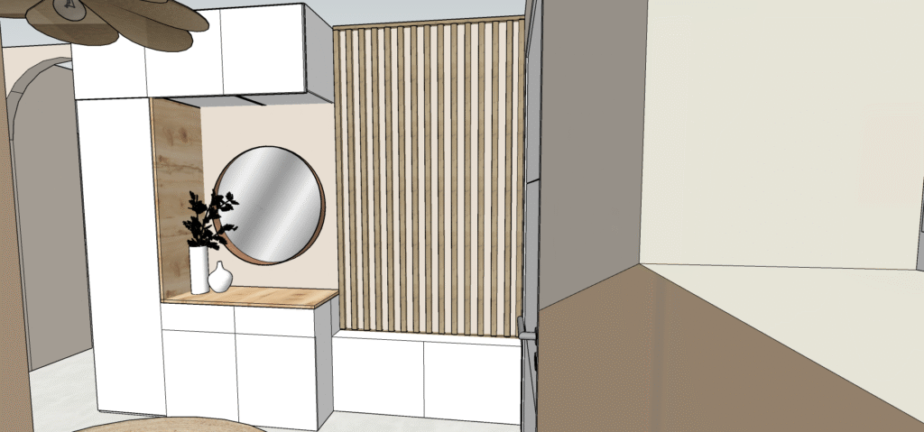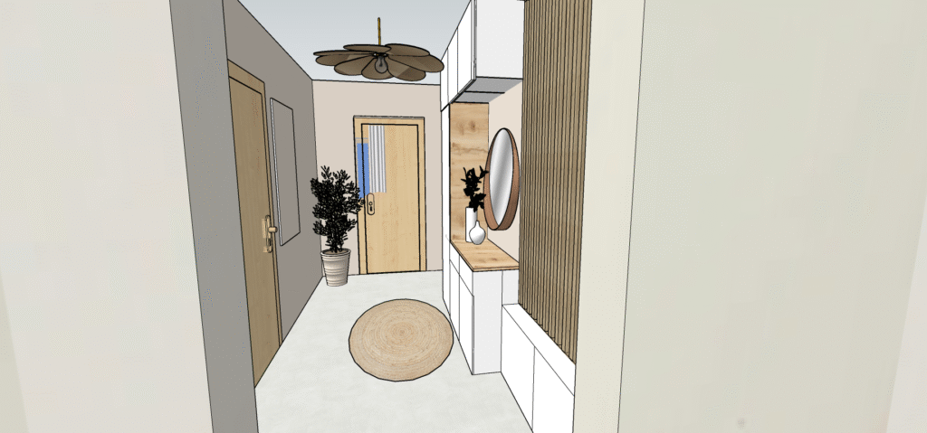 👉 Résultat : une entrée charmante, mais peu pratique au quotidien, vite encombrée par les sacs, manteaux ou objets de passage.